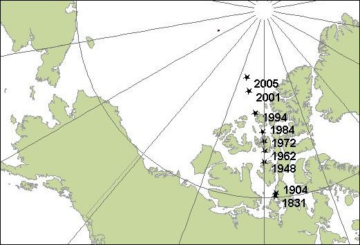 Scientists say that magnetic north, which for two centuries has been in the icy wilderness of Canada, is currently relocating towards Russia at a rate of about 40 miles a year. The speed of its movement has increased by a third in the past decade, prompting speculation that the field could be about to "flip", causing compasses to invert and point south rather than north, something that happens between three and seven times every million years. The current rate of magnetic north's movement away from Canada's Ellesmere Island is throwing out compasses by roughly one degree every five years, prompting the US Federal Aviation Administration to re-evaluate runway names across the country every five years.
