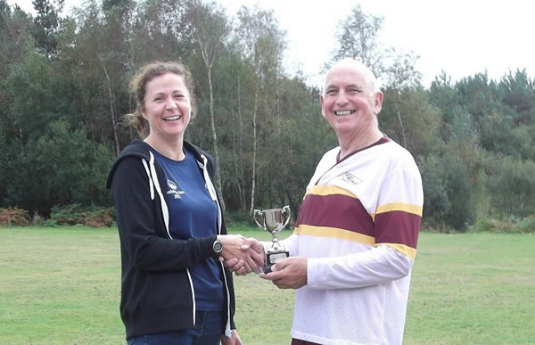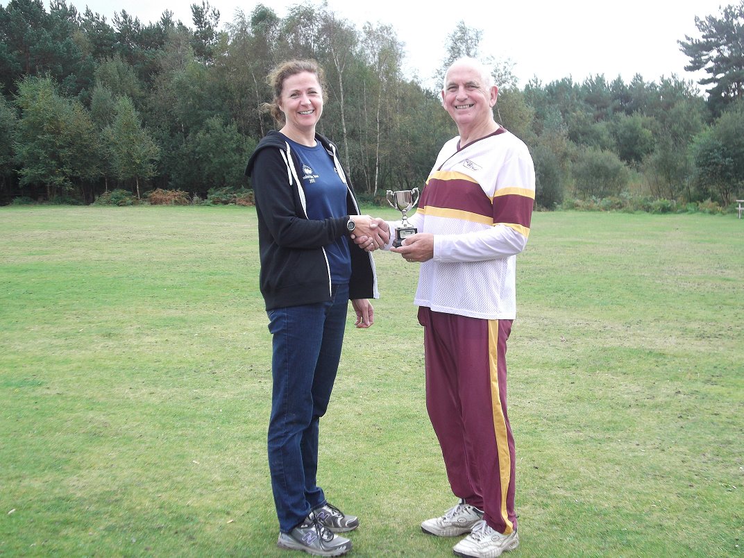 Wendy Bullen is presented with the Summer League Cup by Trevor Bridle