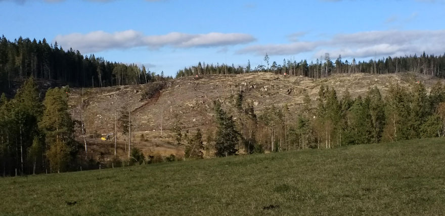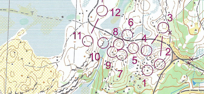 The final instalment was a PreO course on Sunday morning on another day of glorious sunny, but freezing weather, within earshot of the airport. The course of 27 controls, was divided into three short sections, the first in a forest and then two on an open hillside, with separate maps for each. The middle section, viewed from a field next to the car park, comprised four single A flag controls situated 500m away on a hillside which had been clear felled, using giant flags to make for better visibility. The last section of the course was set on the same hillside, but viewed from below and much closer, using conventional flags which had been largely invisible from the distant viewing point.