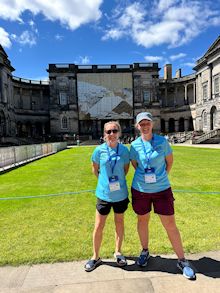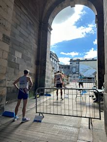 12 July was an early start for the individual sprint qualifiers, starting along a canal in Leith. The men came first all looking either very nervous or very focussed, followed by some equally nervous women. It was interesting to see their focusing techniques and how they warmed up, with all of them staying away from everyone else, doing short sprints or little dances. None chatting away like us amateurs often do just before we head off! Once all runners were through it was a quick close down and three of us, Katie Costello, Sally Calland and myself pegging it over to get our own races in about 1km away using a similar area as the elites had and the same finish so we got to experience what they had. Few little mistakes but it was a great course to test us on the first day, though very different to the warm up which was up Arthurs Seat! It was then straight on a bus to the second secret location of the day – the Old College. What an amazing venue to start the finals, very technical and challenging, finishing off in Princes Street Gardens to a huge crowd, with the castle as a background….of course I didn’t see any of that as I was marshalling competitors across a busy road and ensuring they reached the start on time but I’m told it was a great atmosphere!