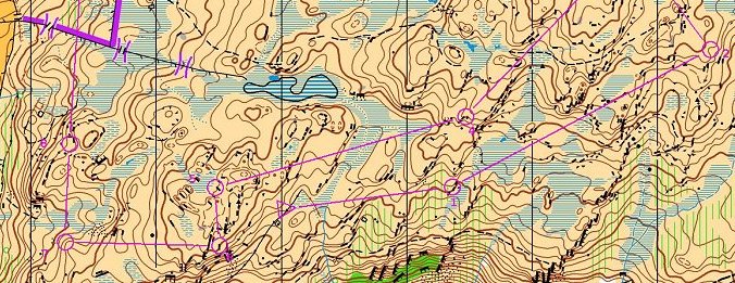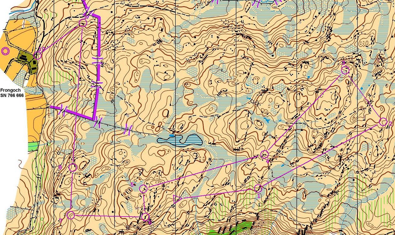 I had seen Thursday’s map and was a bit concerned about the lack of familiar features, just crags, marsh and contours! I am always reassured when I find the first control. I had wandered a little too far north to the wrong crag cluster. However after that I didn’t lose map contact.