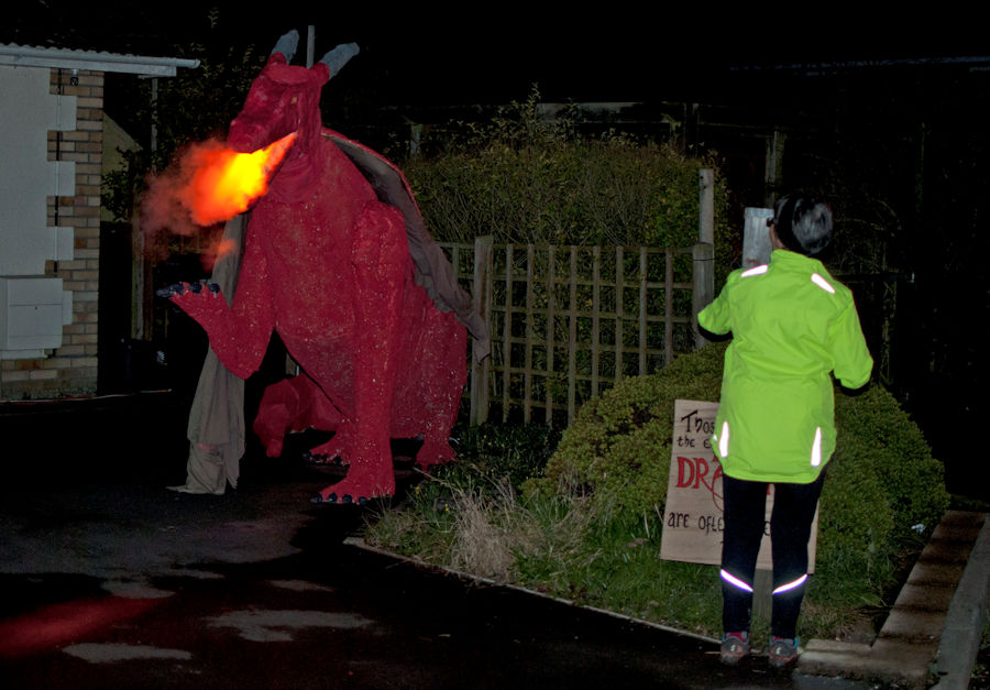 Last night was a Wessex Region Night League event at Gillingham. 41 enthusiastic competitors took part and the highlight of the evening was finding a 3m high Dragon – yes – that is correct – a very large Dragon that had escaped from the Gillingham Carnival a few years ago!