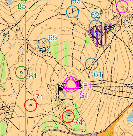 The format was deceptively simple. There were 7 score courses of varying standard, 5 controls per course, printed on two maps. 3 courses were on Map 1 and 4 courses on Map 2. The courses had different colour overprints & number sequences so they shouldn't be confused. Two runners set off, the first one back gave his/her map to the waiting member, and so on until all 7 courses had been run. The mechanics were dead easy but the strategy required thought. How do you synchronise shorter & longer courses to minimise waiting around? How do you keep Map 2 moving continuously? Michelle masterminded a Timetable which Becca endorsed as a winning Plan! I mostly agreed and did as I was told.