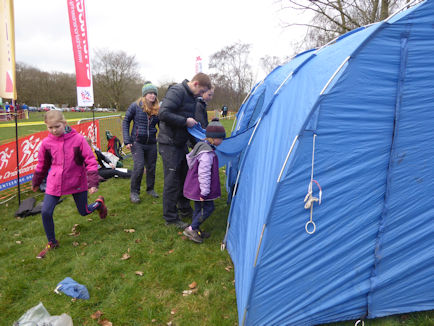 At the end of the day, for most people, there was the luxury of only a short distance to travel to overnight accommodation, re-assembling on Saturday morning for the Middle Distance race at Brereton Spurs near Rugeley. Now we were to get to grips or in some cases vice versa, with the hilly woods, spurs, re-entrants and paths of Cannock Chase and it was surprising how quite a small area of woodland could absorb more than 2,600 competitors. Parking was in a gently contoured field, which could have been a problem had it not been for the well planned use of track matting and careful parking which resulted in almost no stuck vehicles. Near Arctic temperatures prevailed and it wasn’t quite the day for sitting outside at the picnic tables provided by the caterers. The WIM tent was established right by the finish line, so it was easy to see incoming runners from the shelter of the tent! Once again the WIM contingent produced some impressive results before all departing to warm local accommodation.