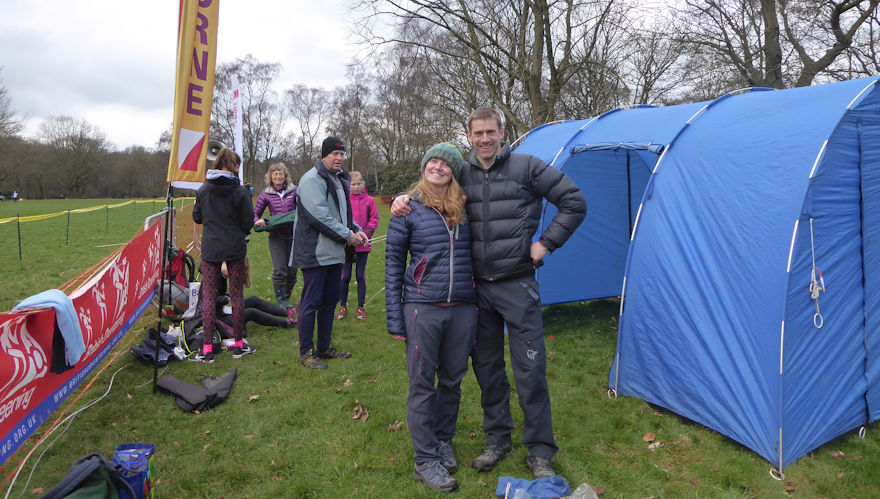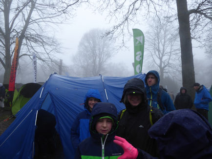 The Relays.... Left - salvaged club tent before the mud; right - slurry; below - keen WIMs at run-in!