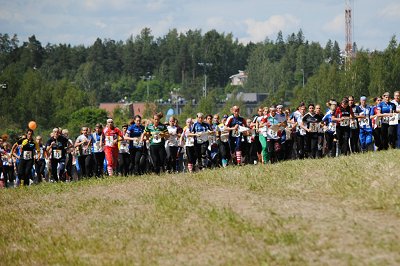 The Jukola started at 10.30pm. It is hard to imagine a mass start of over 1600 runners with headlights on. Not all men either – many females run as they consider the Venla for ‘wimps’.