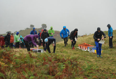 Finally came Friday, Dale Park and the so called Middle distance sprint. For many of us this just didn’t happen. Parking was in a reasonably flat, accessible field with all the event functions close at hand and it was about 1k walk to the start. For many of us it was the heavy rain that caused problems. Dale Park is a steep slippery wooded hillside with many streams, gullies and crags. The streams were in spate so crossing them for less those less than bionic was a problem. Frustratingly for Kevin despite a storming run he was placed 4th in M65S by 49secs and this proved to the discard day for Sue.