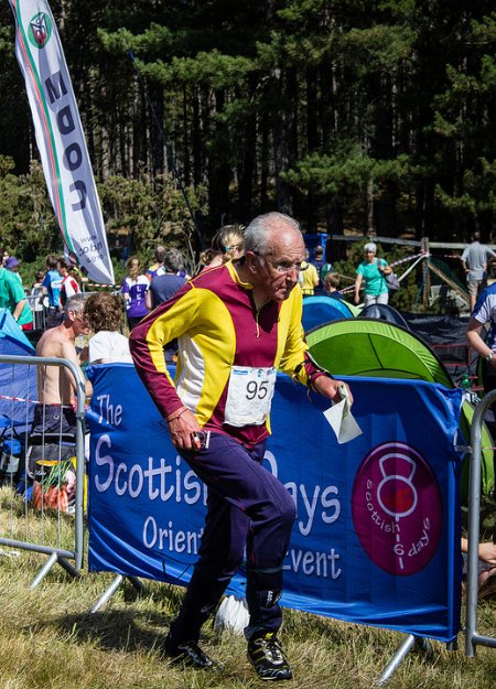 The event infrastructure was first rate. A large campsite was provided at Brodie Castle,for a detailed report talk to Dick, Jo or Becca. The car parks were invariably in flat firm fields and event information was always on hand with a daily 'News Sheet' given out as you arrived at the car park. Assembly was never far from the cars and it was great to walk round soaking up the atmosphere and hearing many foreign languages as people pitched their club tents and created a sea of waving multicoloured banners round the finish run in and event admin. The News sheet had a personal column and WIM featured on two days with Barbara and I celebrating our Golden Wedding and Chris and Lynn their 40th anniversary during the week.