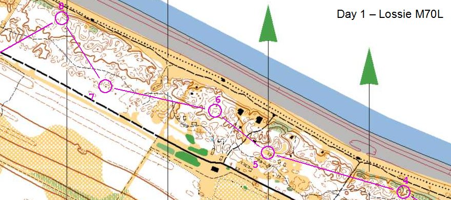 We had a wonderful week at the Scottish 6 days. Instead of the steep slopes, thick brashings,deep marshes and high craggy mountains which we usually encounter, the week was predominantly on runnable lightly wooded sand dunes.