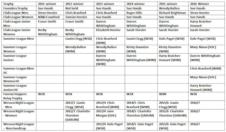 Furrow Hoppers Trophy for some reason this didn’t get presented at the event so better late than never and apologies to the winning team. Wessex Raiders convincingly won the Trophy back from last year’s winners – Wimborne Orienteers.