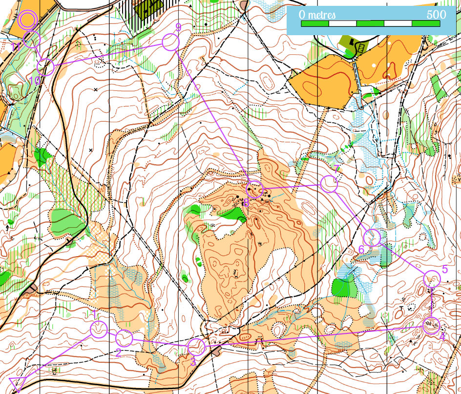 The route to most competitors first control was along a small ditch with dark green forest on either side so you had to get your feet wet and muddy straight away. I remember thinking how bad it would be for later starters as we had the early start on the first day and what a mud bath it would turn into but it didn’t matter as the heather we encountered later on wiped all the mud away! I was very pleased with my run as I had a plan for each leg before I left the control and everything appeared as it should and controls popped up in front of me. On checking splits on  the long leg from control 6 to  I seem to be the only one who took the slightly longer route but less climb and it cost me about 4 mins but I still managed a respectable 6th place out of 56 competitors.