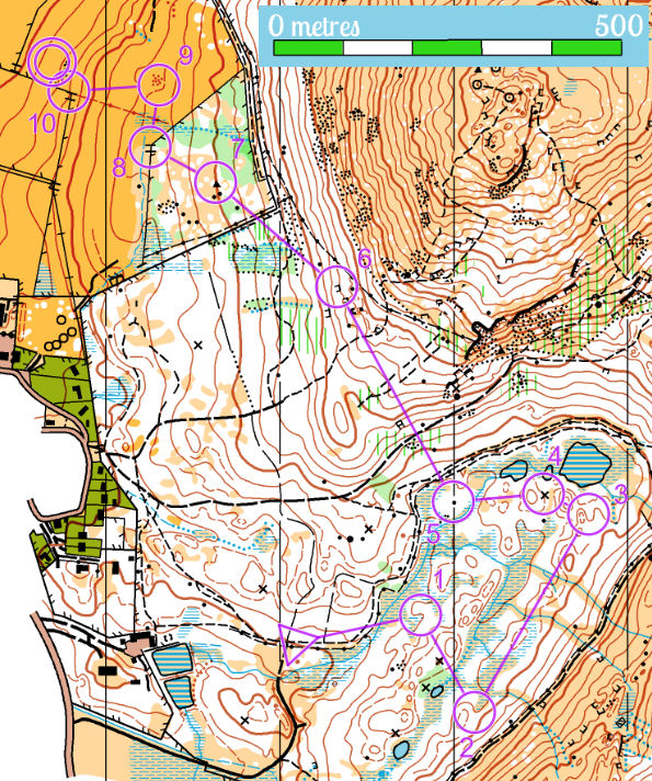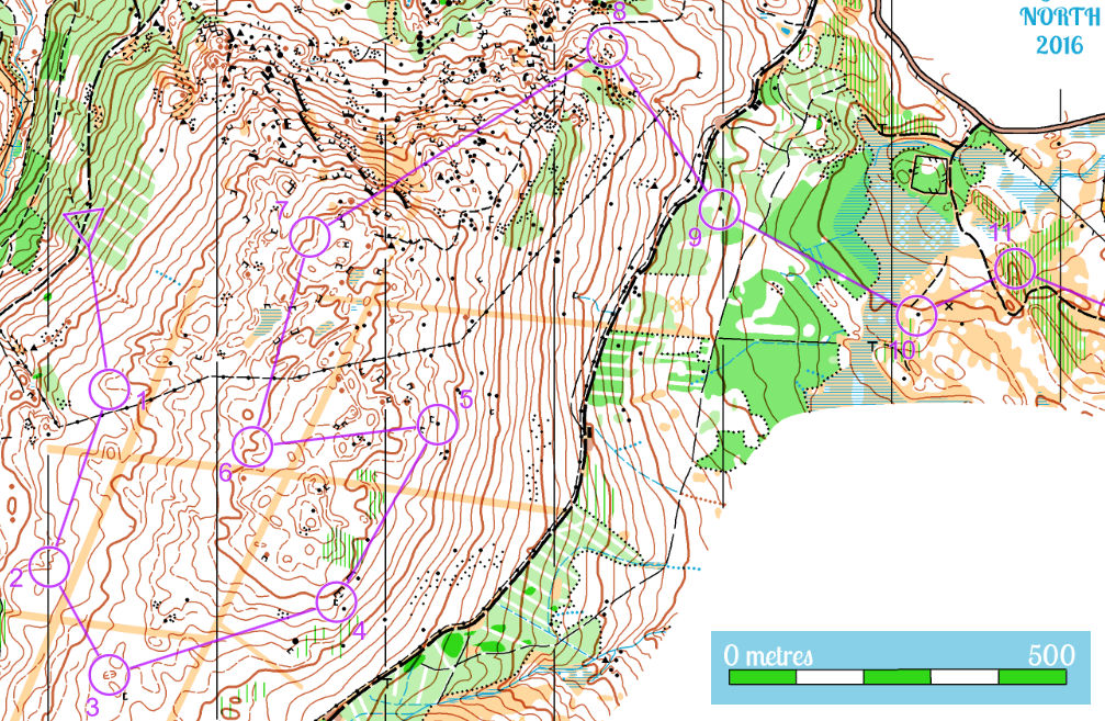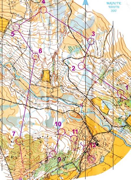 Sloppy run today. Little mistakes in a nice marshy area on several controls and unfortunately the 2 controls I did best on were discounted later as one of the controls was moved by locals ( no 12 control ). When I left the field, I was 6th out of 40, discounted controls meant I moved into 19th position. My worst result and I should have done much better as it was the least technical of the week and a type of area that is nice to run in. One to drop.