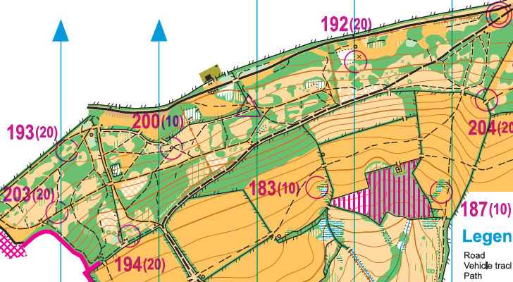 John & Di received many well deserved compliments on the planning. Away from the relative civilisation of White & Yellow, John had designed a devious Orange to test the brain and a tough Light Green requiring tricky choices. The Score was especially evil: whatever route you planned, one or two controls refused to fit nicely in (as a few unwary runners discovered)!
