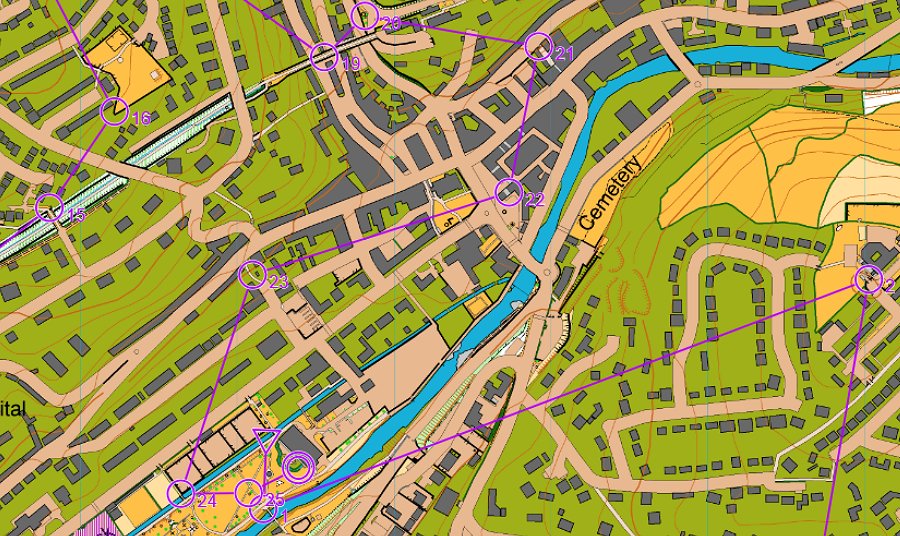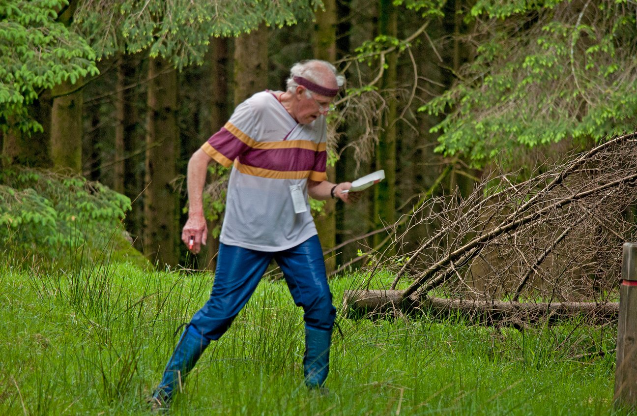 I sprinted off to an easy first control and was pleased to, for once, find it very quickly but looking at the map (planning ahead…) I suddenly realised it was on two sides and I couldn’t work out which one I should be on. I skidded across some moss, smacked my shin painfully on the railing and said a couple of rude words. Luckily no one saw. Oh yes. They did actually. Lots and lots of people.