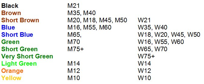 The colours laid down by British Orienteering for long distance courses are the basis for calculation. Colours are derived from Appendix B, Section 8.6 of the BO Rules of Orienteering 2014.
